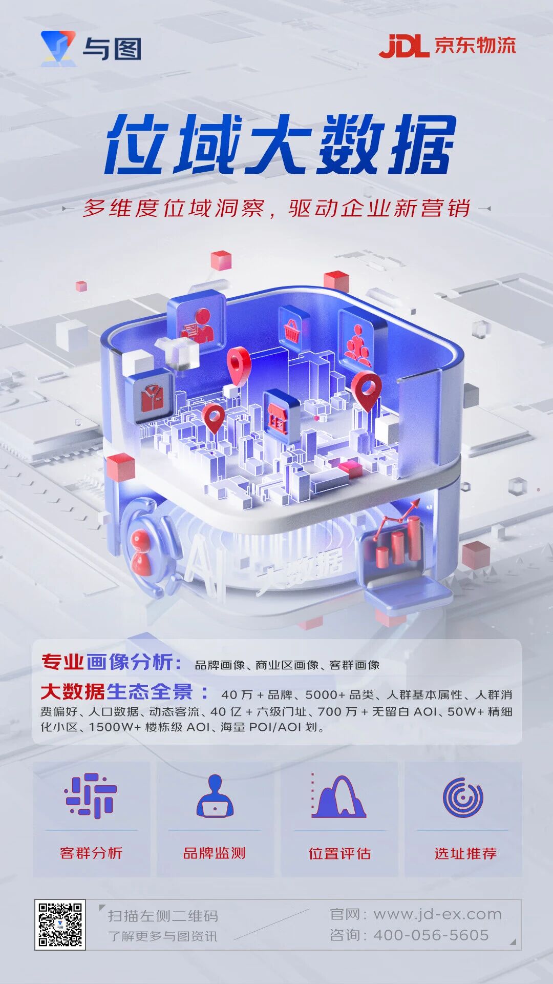 今年京东物流“与图”最新推出的位域大数据服务在零售连锁、商业地产等多个行业逐步落地应用,基于“人车货场客销”场景布局,融合并深度挖掘时空多源数据价值,构建区域、业态、消费者等多维度画像,为客户提供安全、稳定、鲜活的数据服务,助力企业省心决策、降本提效。下面介绍几个合作案例。